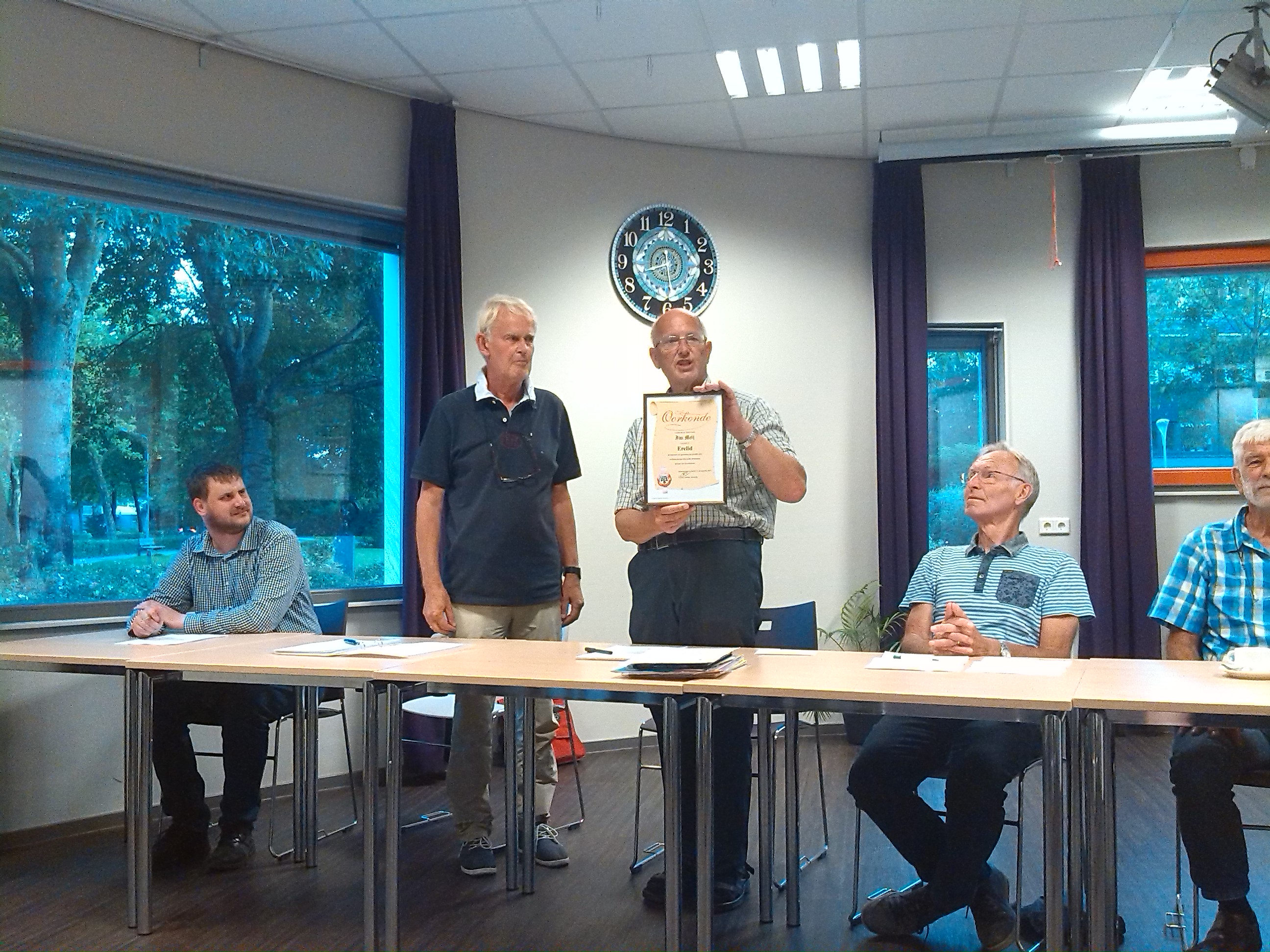 Bijgaand de oorkonde die ik heb mogen ontvangen. Nogmaals hartelijk dank voor deze waardering.